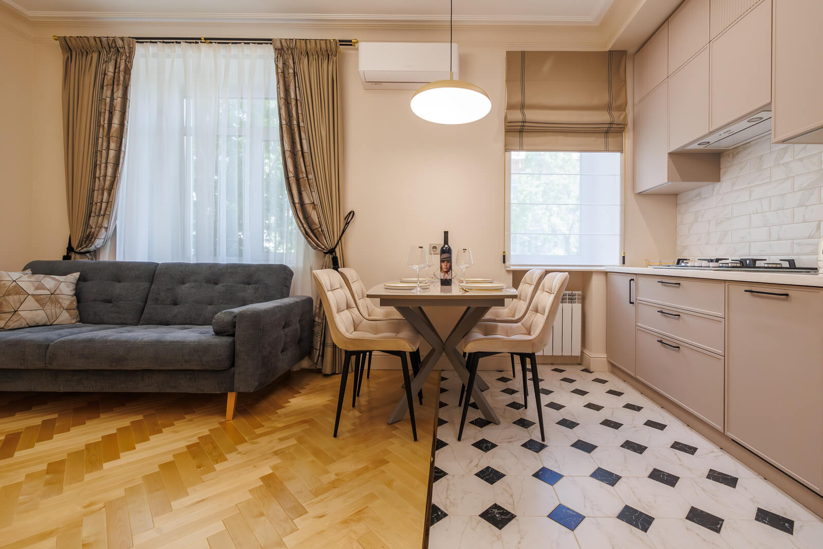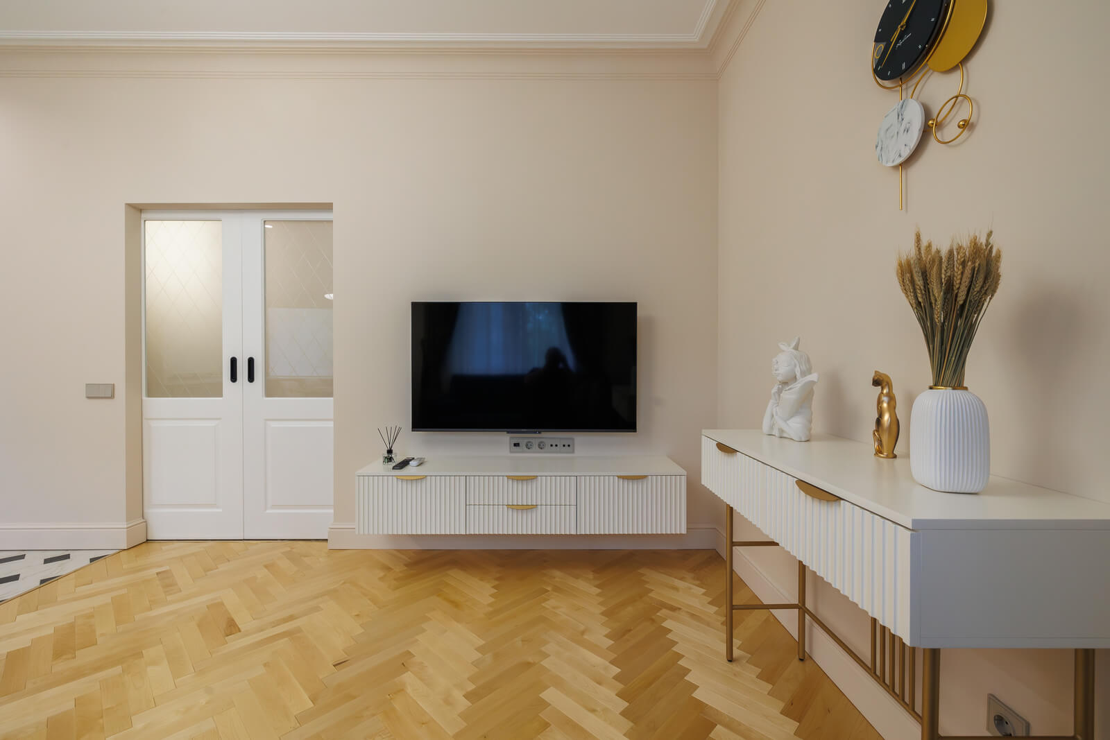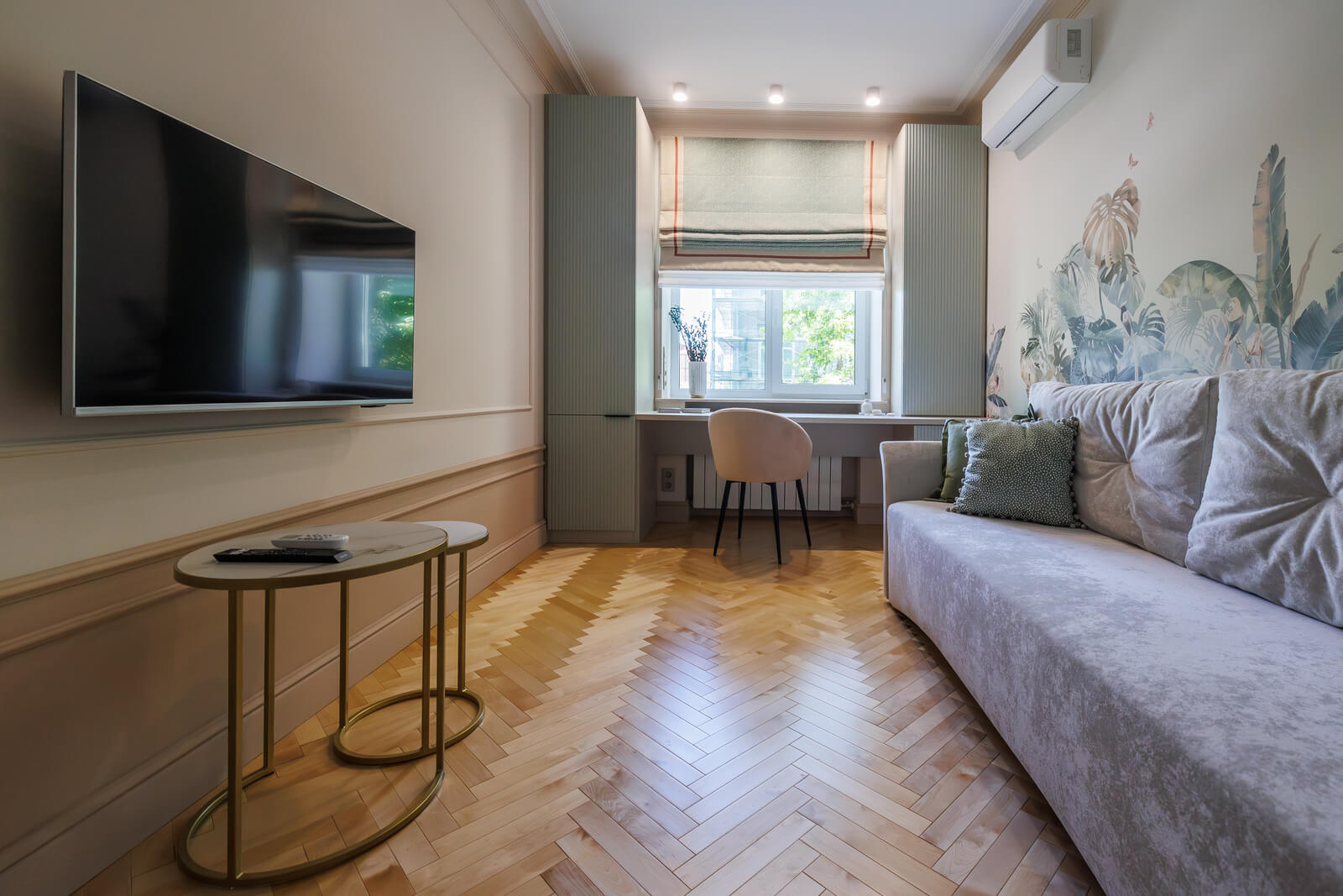 Получился свежий, легкий, современный классический интерьер с множеством ЭКО элементов, а современные дизайнерские отделочные материалы сделали интерьер стильным и интересным.