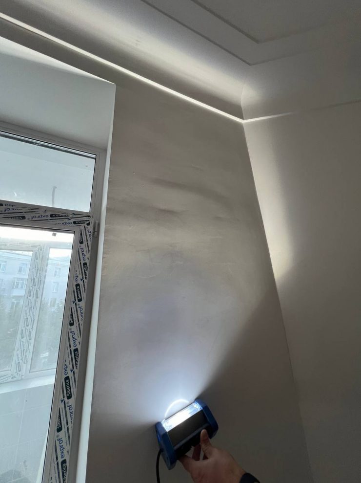 На первый взгляд всё вроде нормально. Но отделочники использовали наждачку с меньшей зернистостью, чем требовалось. И при детальном осмотре на стенах видны микро-неровности и задиры шпаклевки.