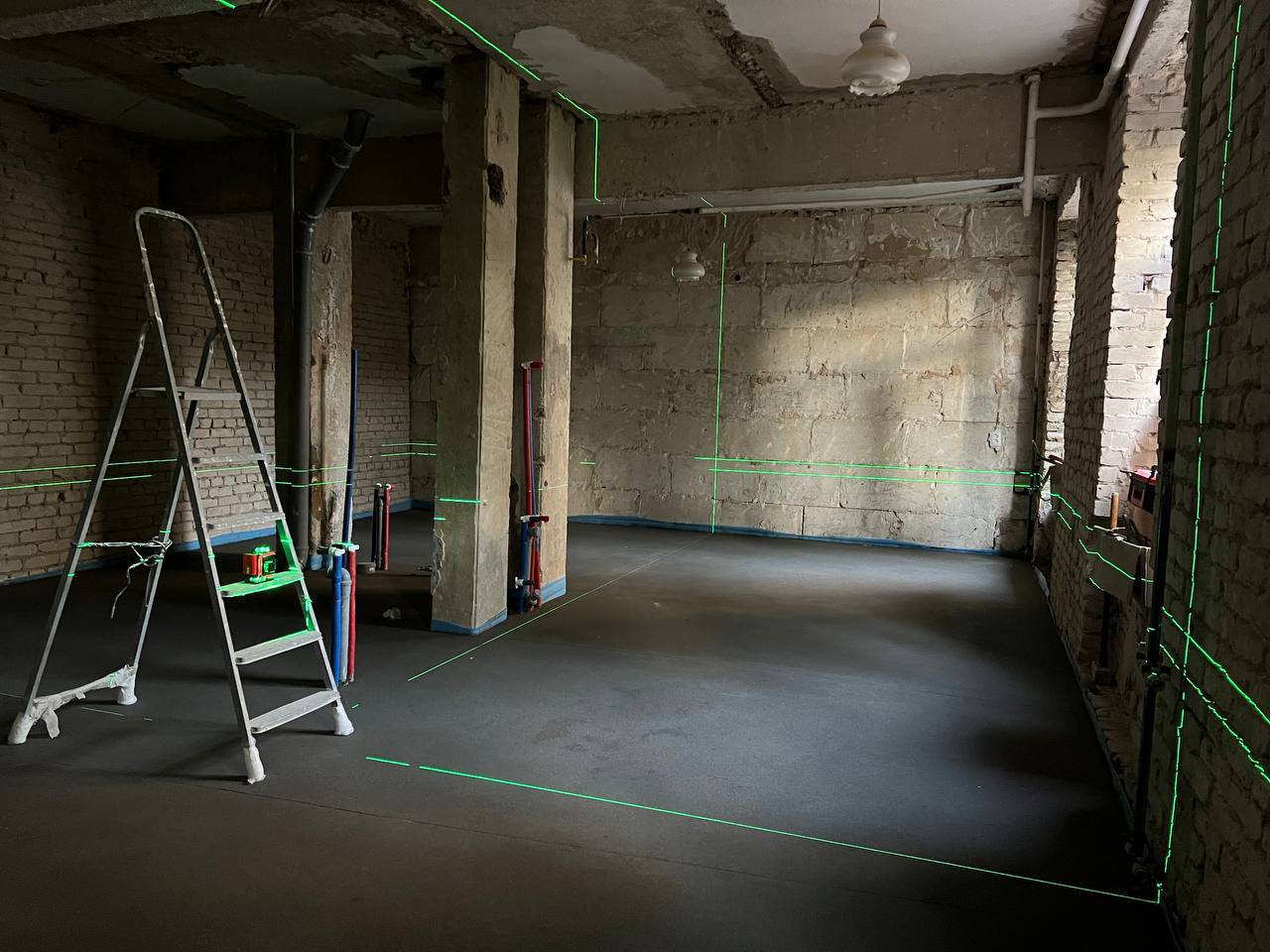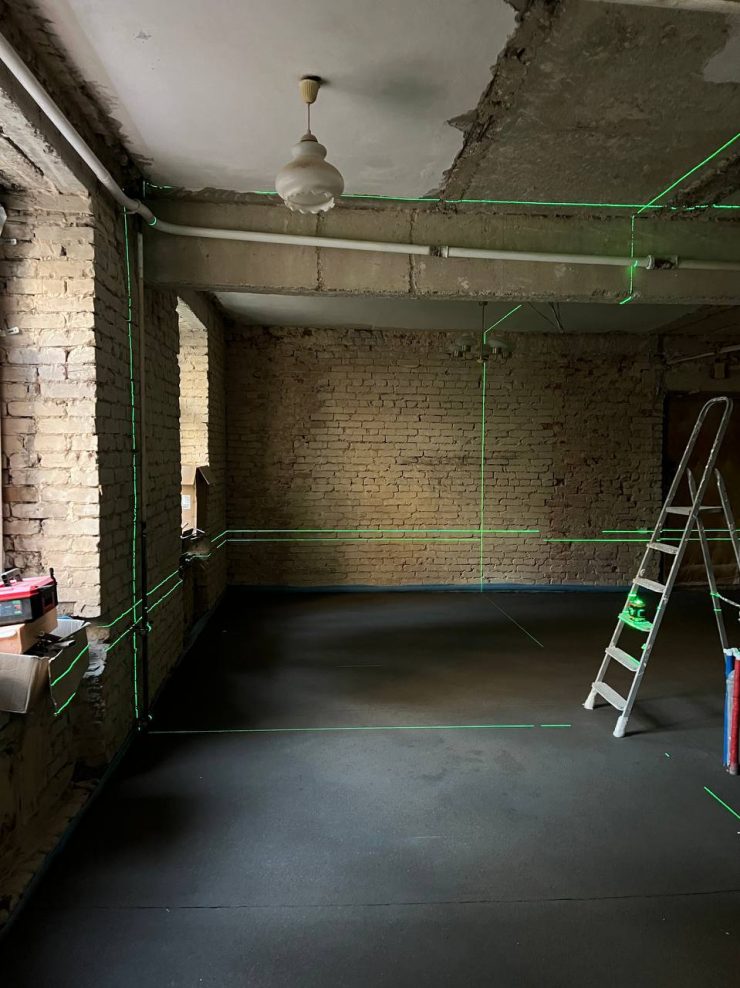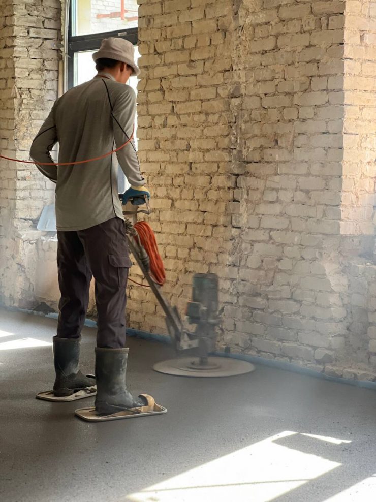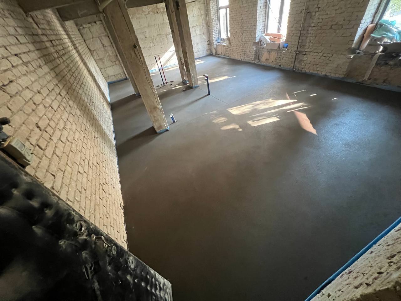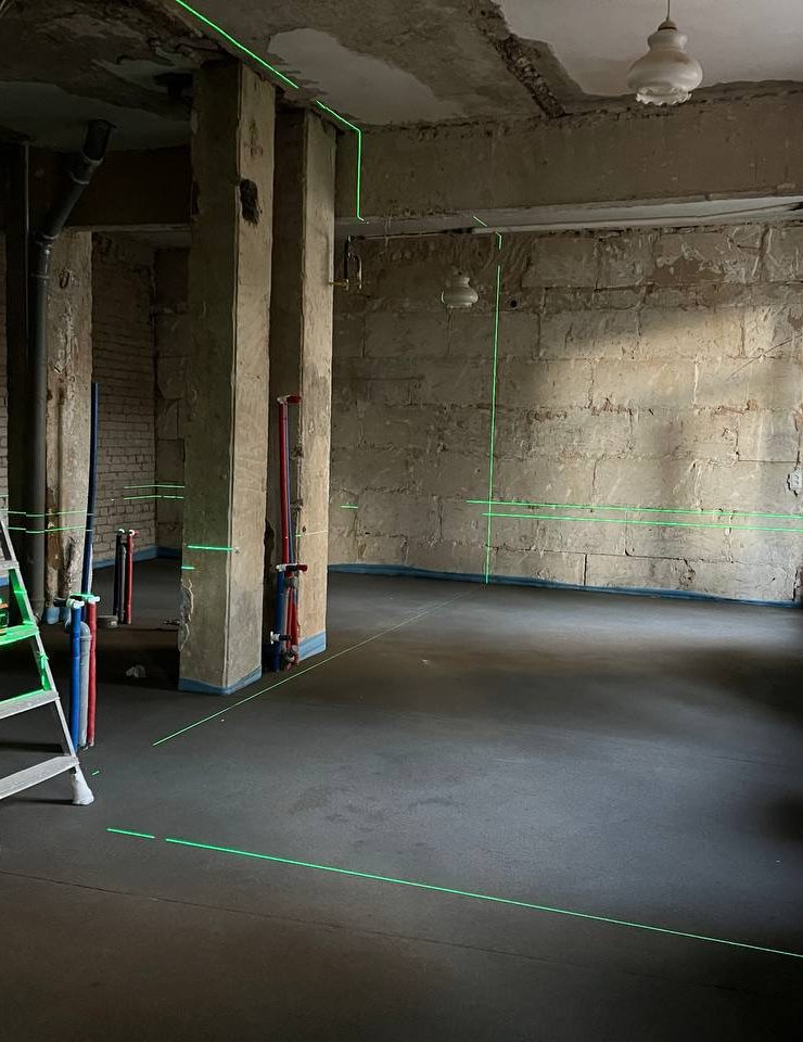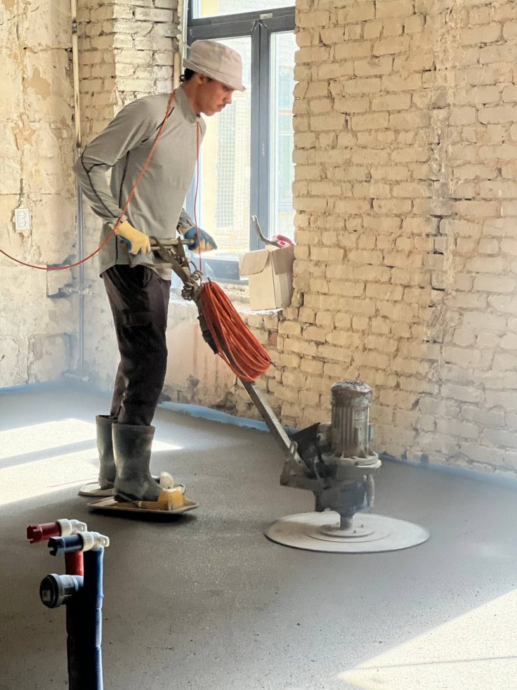 Сторонняя бригада по полусухой стяжке, выполняли работы по выравниванию пола. Знаю этих ребят давно, делают круто и качественно, но … доверяй, но проверяй, на этом объекте что-то пошло у них не так … были выявлены перепады высот уровня пола от 3 до 7 мм. Вроде ну чего там!? мало … но даже такие небольшие перепады заставят ваш паркет «плясать» … а это лечится только перекладыванием паркета заново, на выровненную наливным полом поверхность.